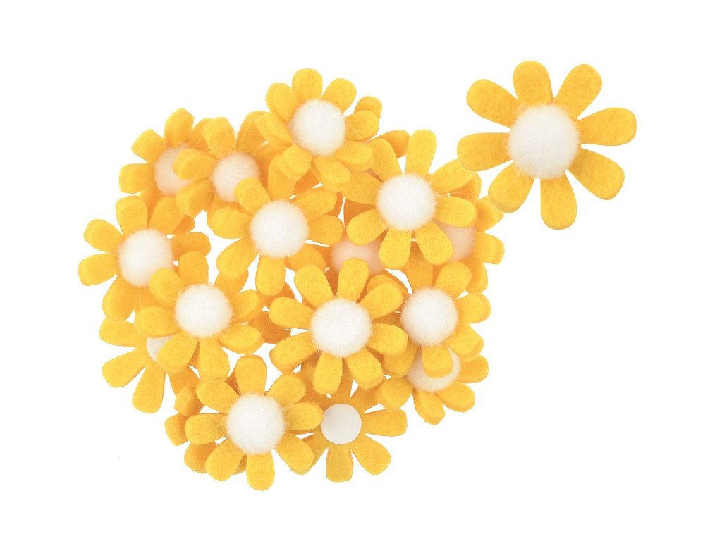 8066-01 Dekorace květy z filcu s lepíkem 3,5 cm, 18 ks v krabičce žlutá