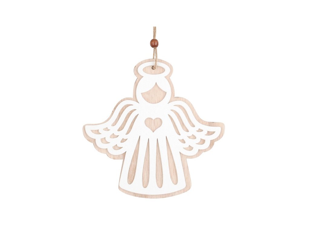 DŘEVĚNÝ ANDĚL NA ZAVĚŠENÍ SE SRDCEM 15CM