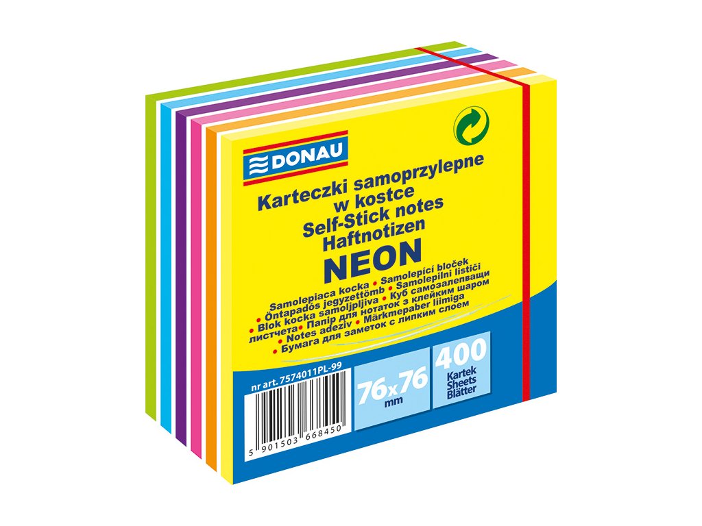 Samolepící bloček Donau 76x76mm 400 listů, NEON mix 6 barev