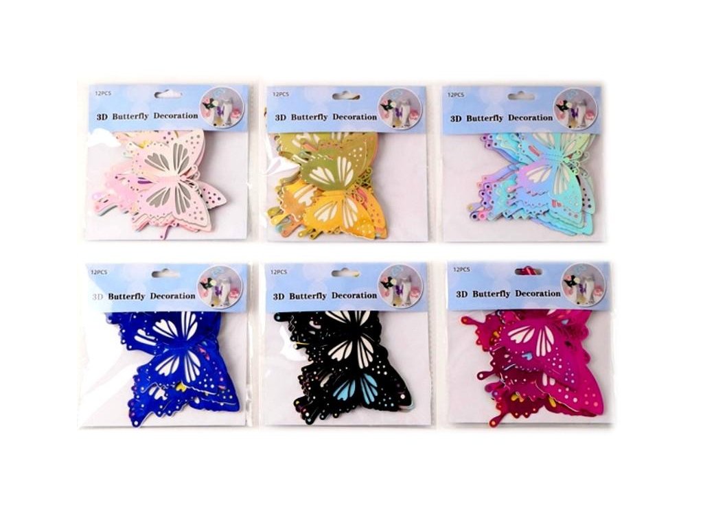 SAMOLEPÍCÍ DEKORACE 3D MOTÝLI 12KS 24386