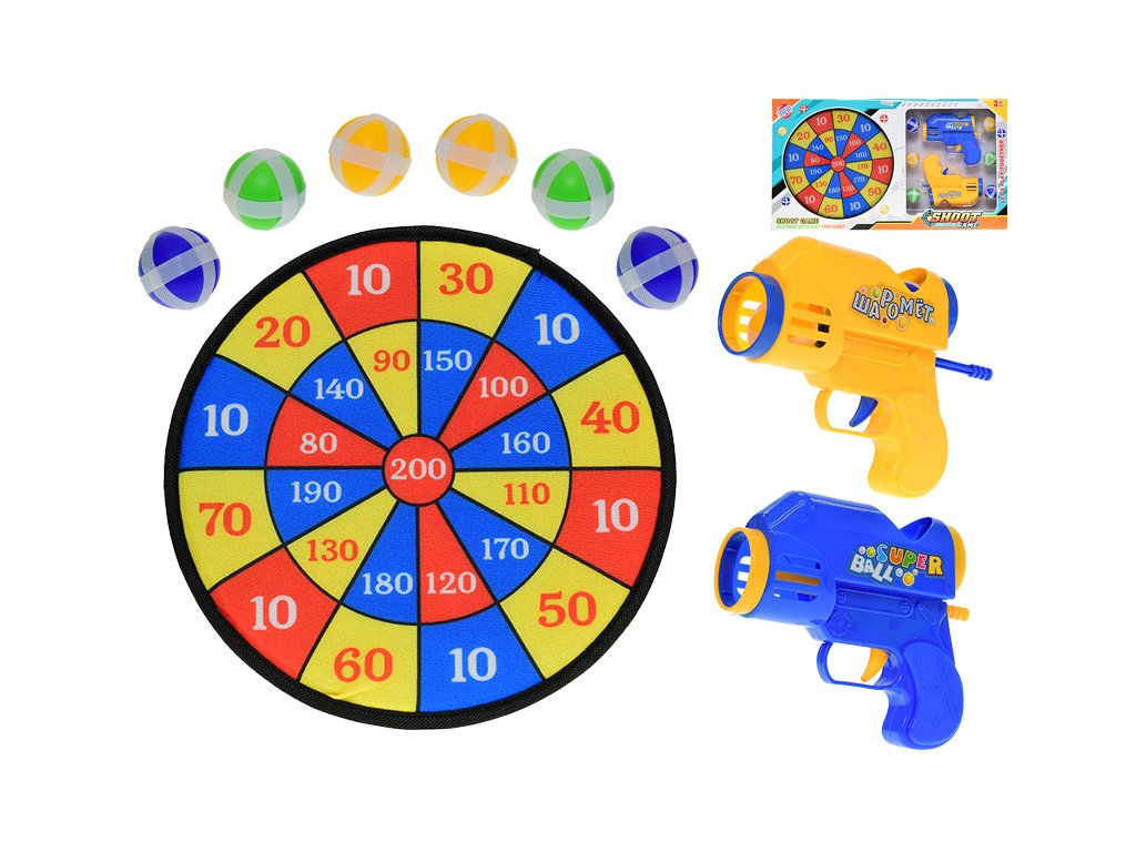 TERČ 27CM NA SUCHÝ ZIP S PISTOLEMI 14CM 2KS + 6 MÍČKŮ 97807