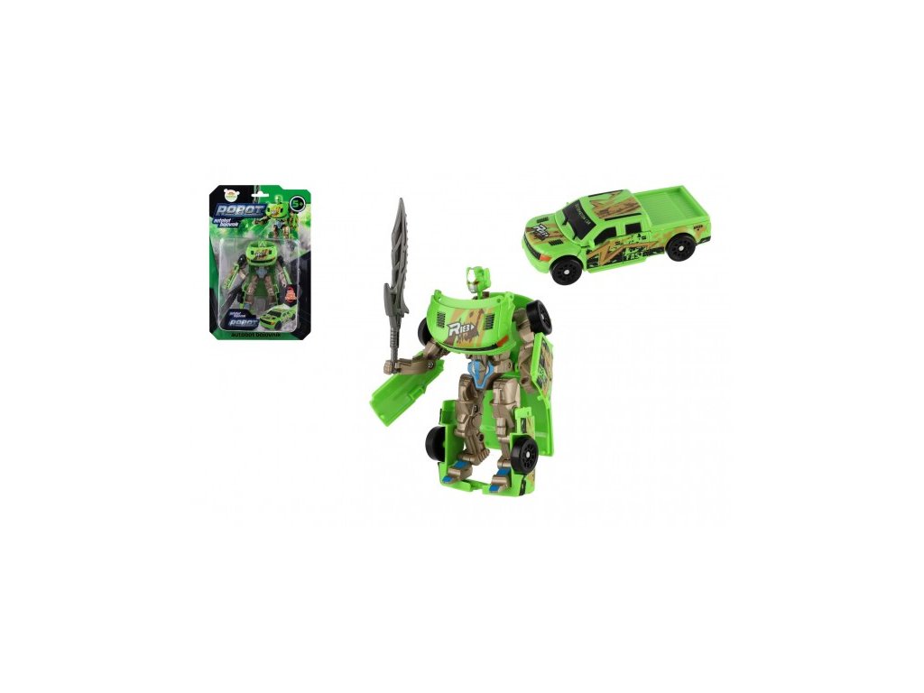TRANSFORMER AUTO/ROBOT PLAST 14CM ZELENÝ NA KARTĚ 800117